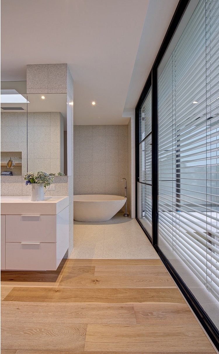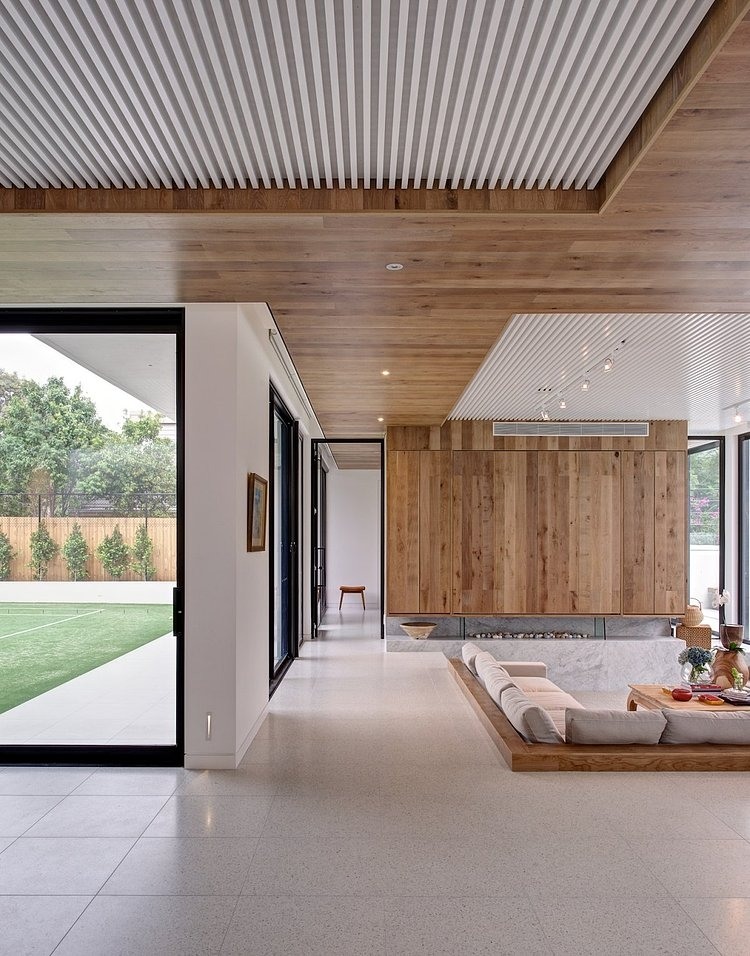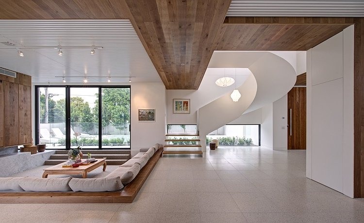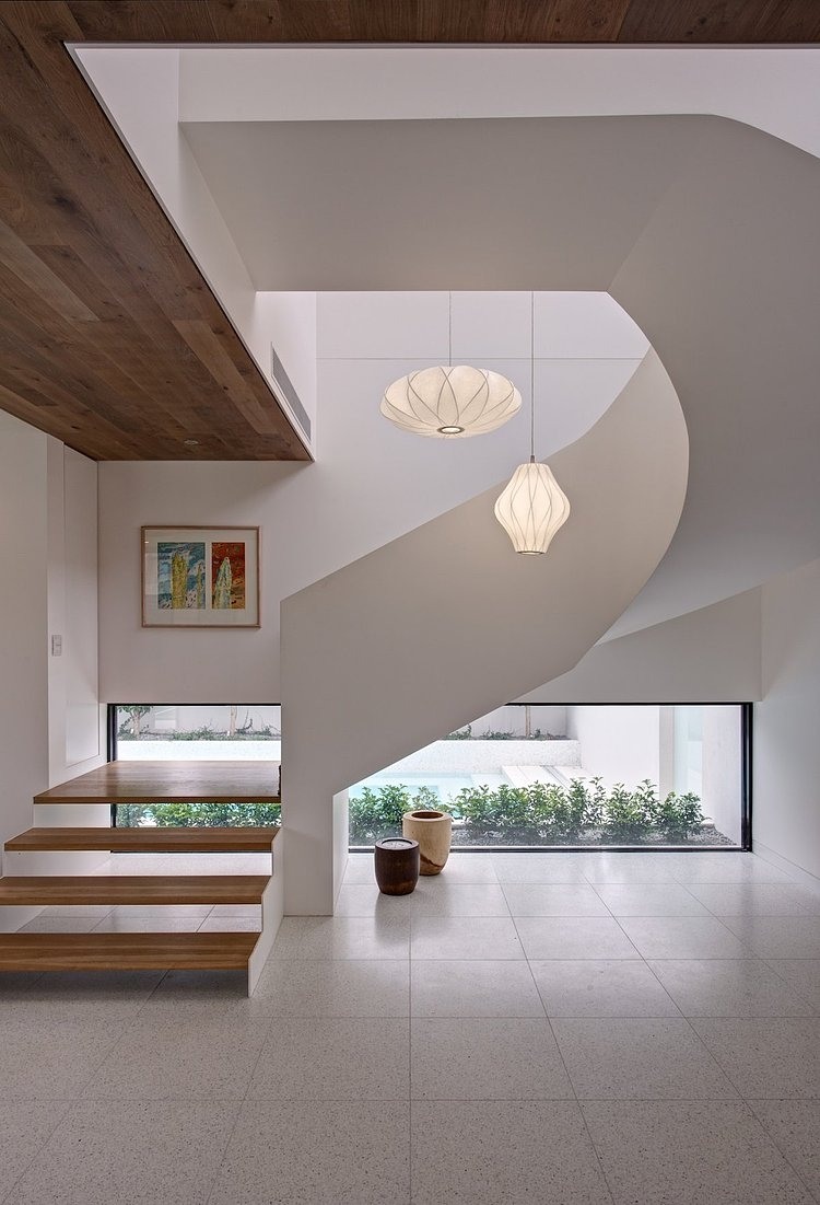 The space was treated from its genesis, with the same respect for design as a museum. Carving of ceiling, walls and floor not only creates sculptural partitions throughout the residence, but with the spirit of a rock pool, provides channels to flow through and delineates ample space in which to dwell together.
